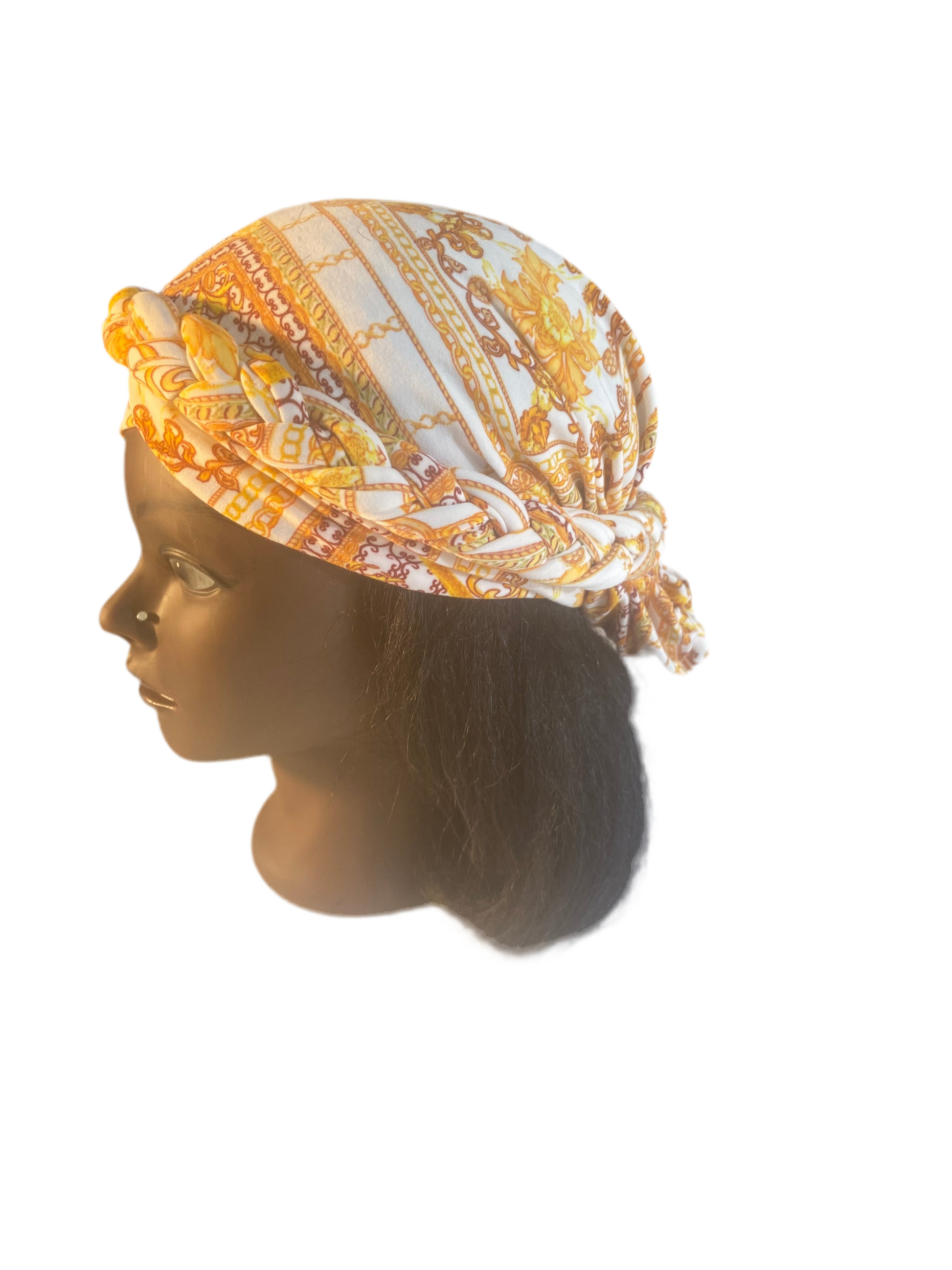 Beautiful bohemian headwear turban hair covering. Can be worn over short or longer hair.